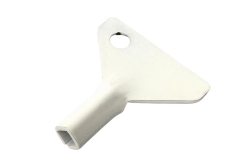 Kovový kľúčik biely lakovaný, na otváranie komínových dvierok