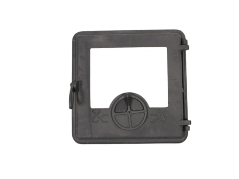 Kvalitné liatinové kachľové dvierka do prikladacích pecí Rozmery: 350x350mm /Uvedený rozmer je vnútorný rozmer stavebného otvoru kachlí, do ktorého sa dvierka montujú/ Materiál: liatina, sklo Farba: čierna