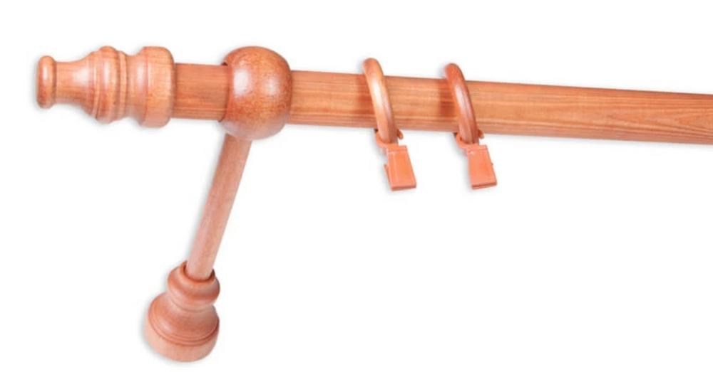 Drevená garniža v čerešňovom prevedení Dĺžka: 2200mm Priemer: 28mm Obsah balenia: Držiak garniže - do 250 cm 2 držiaky, nad 250 cm 3 držiaky Krúžky a štipce - na každý meter 8ks 2ks koncoviek Skrutky na upevnenie držiakov