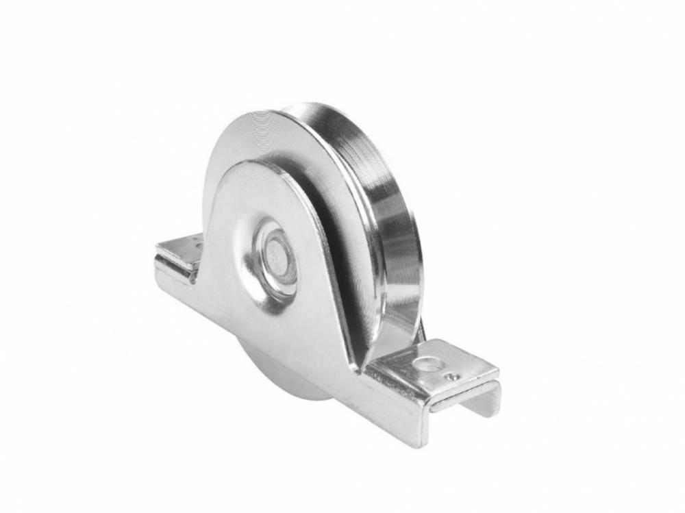 Pozinkovaná kladka spodná "V" profil s vnútornou podperou, jednoložisková pre posuvné brány Priemer: 80mm Maximálne zaťaženie: 150kg Povrchová úprava: galvanické pozinkovanie