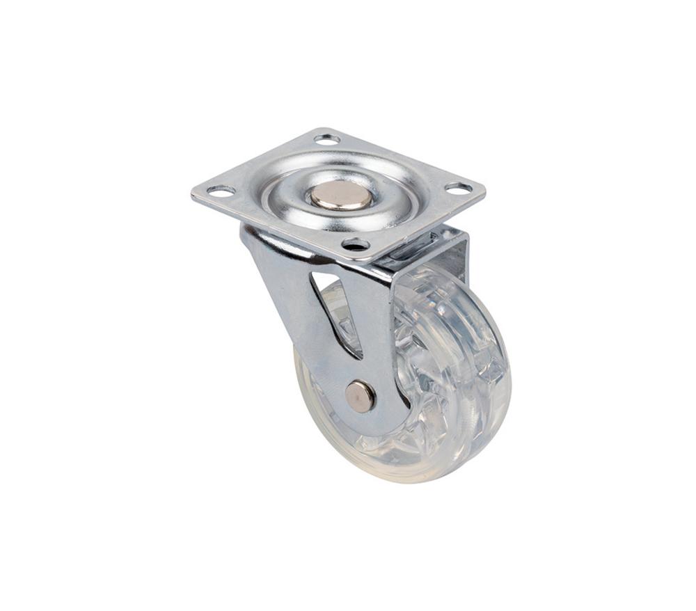 Nábytkové koliesko urobí z každého kusu nábytku dizajnový skvost Moderné transparentné prevedenie kolieska aj kovovej konštrukcie Bez brzdy Priemer kolieska: 50mm Rozmer platničky: 50x50mm Výška: 65mm Nosnosť: 35kg