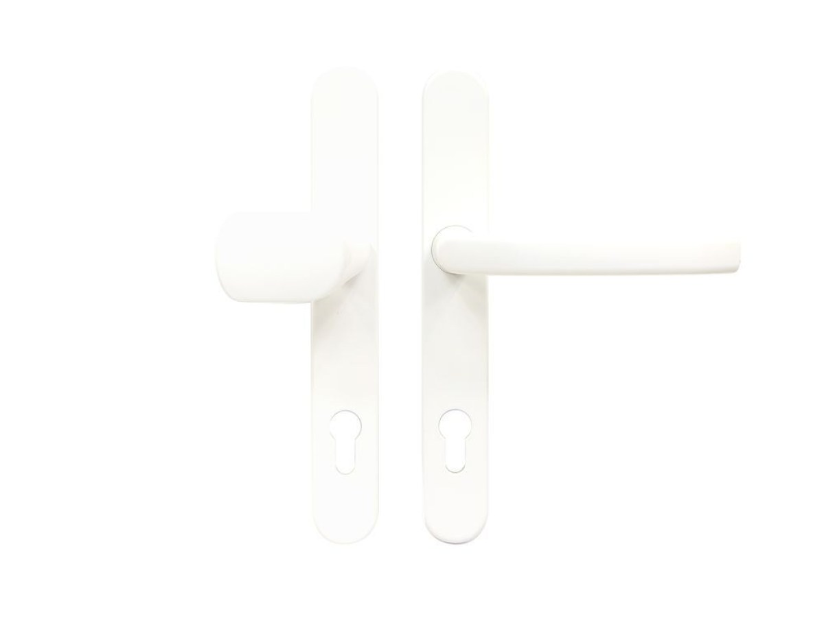 Masívne hliníkové kovanie pre vstupné dvere Prevedenie kľučka - madlo Zakryté šróby na vnútornom štíte kovania Vratný mechanizmus kľučky tvorený štyrmi pružinami s hranolom Pre hrúbku dverí 78-88mm (možnosť skrátiť až na 40mm) Rozteč: 92mm V balení sa nachádza štvorhran 8x8mm, 3x spojovacie šróby M6x100mm, a vŕtacia šablóna
