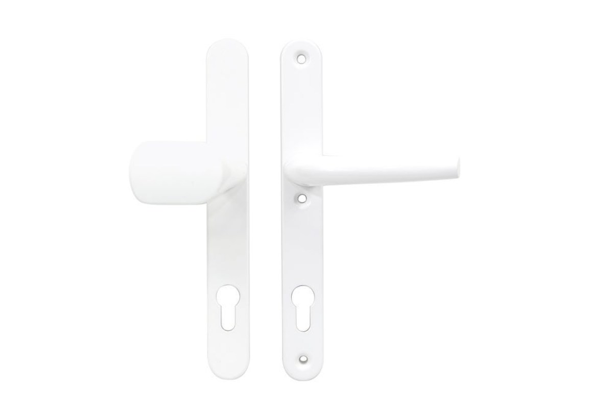 Masívne hliníkové kovanie pre vstupné dvere Prevedenie kľučka - madlo Viditeľné šróby (s plastovými krytkami) na vonkajšom štíte Vratný mechanizmus kľučky tvorený štyrmi pružinami s hranolom Pre hrúbku dverí 72-92mm (možnosť skrátiť až na 40mm) Rozteč: 92mm V balení sa nachádza štvorhran 8x8mm, 3x spojovacie šróby M6x100mm, a vŕtacia šablóna