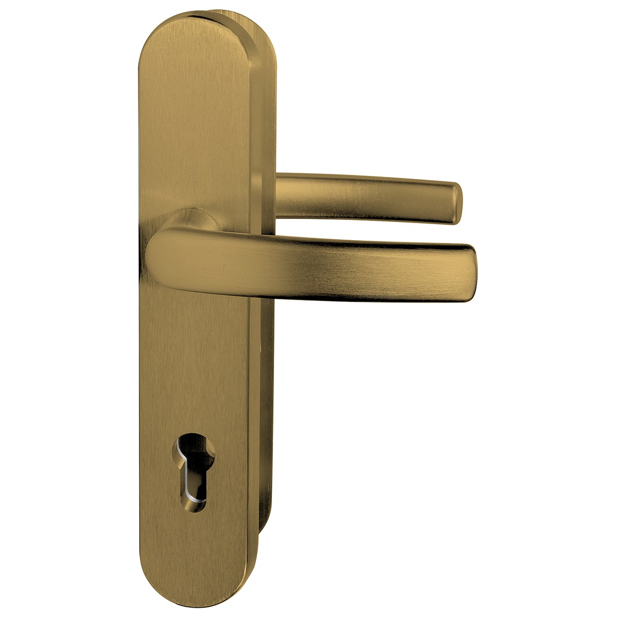Bezpečnostné kovanie v prevedení kľučka - kľučka, bez prekrytia (PZ), rozteč 90mm Povrchová úprava bronzový elox (F4) Trieda bezpečnosti 2 Použite s cylindrickou vložkou v triede bezpečnosti minimálne 2 Vhodné pre hrúbku dverí: 40-55mm (pre hrubšie dvere je nutné doobjednať predlžovaciu sadu)