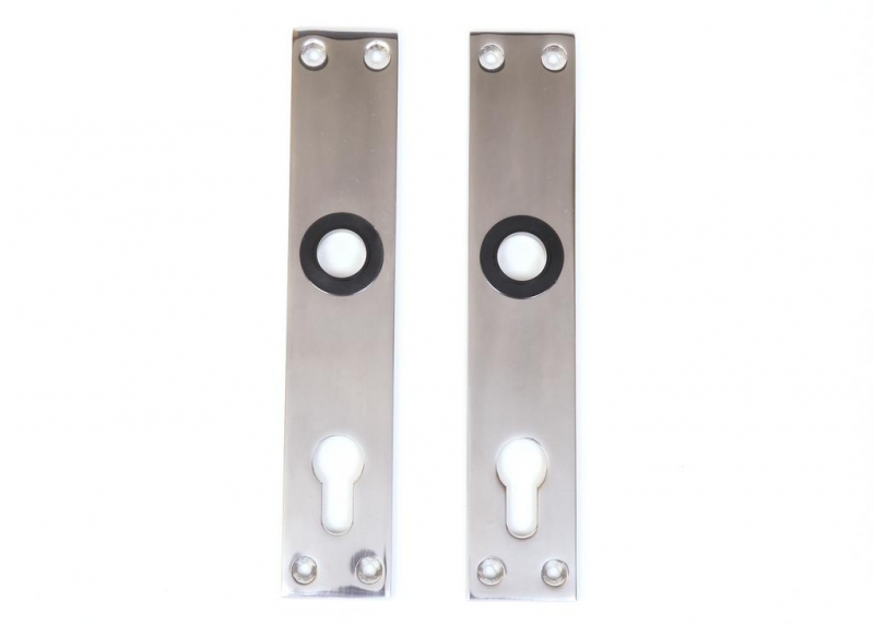 Hliníkové štítové kovanie bez kľučky v prevedení na vložku, rozteč 90mm Dĺžka: 220mm Šírka: 38mm Hrúbka: 5mm Rozteč: 90mm Rozteč otvorov na vruty: 200mm na výšku a 23mm na šírku Materiál: vysoko leštený hliník V Balení sa nachádzajú 2 kusy štítov