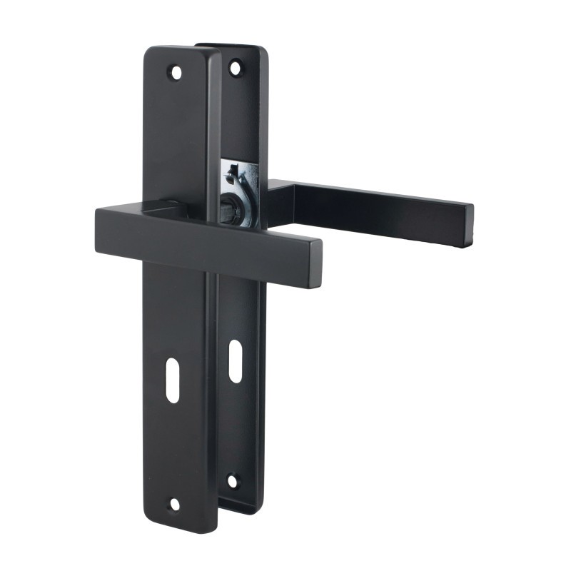 Moderný hranatý dizajn štítu – konzistentný vzhľad s obľúbenými loftovými/priemyselnými dverami a modernými izbovými dverami Odolný čierny práškový náter – zvýšená odolnosť voči poškriabaniu a každodennému používaniu Dvojitá pružinová podpera – plynulý návrat kľučky, bez prehýbania, dlhšia životnosť mechanizmu Materiály: presne liata kľučka Zamak, lakovaný oceľový plech – stabilita a pevné upevnenie Jednoduchá inštalácia – štandardný štvorhran 8x8 mm, pasuje na dvere s rozmermi 38–45 mm a zámky s rozmermi 90 mm na obyčajný kľúč Odolné voči poveternostným vplyvom – ochranný náter pre vyššiu odolnosť povrchu