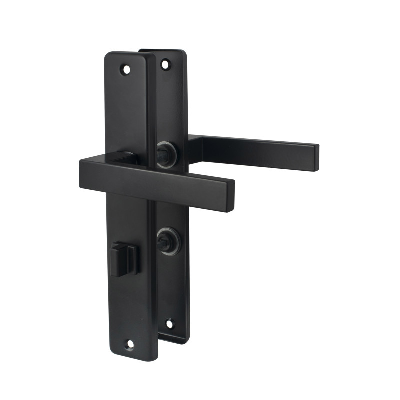 Moderný hranatý dizajn štítu – konzistentný vzhľad s obľúbenými loftovými/priemyselnými dverami a modernými izbovými dverami Odolný čierny práškový náter – zvýšená odolnosť voči poškriabaniu a každodennému používaniu Dvojitá pružinová podpera – plynulý návrat kľučky, bez prehýbania, dlhšia životnosť mechanizmu Materiály: presne liata kľučka Zamak, lakovaný oceľový plech – stabilita a pevné upevnenie Jednoduchá inštalácia – štandardný štvorhran 8x8 mm, pasuje na dvere s rozmermi 38–45 mm a zámky s rozmermi 72 mm na WC (s olivou) Odolné voči poveternostným vplyvom – ochranný náter pre vyššiu odolnosť povrchu