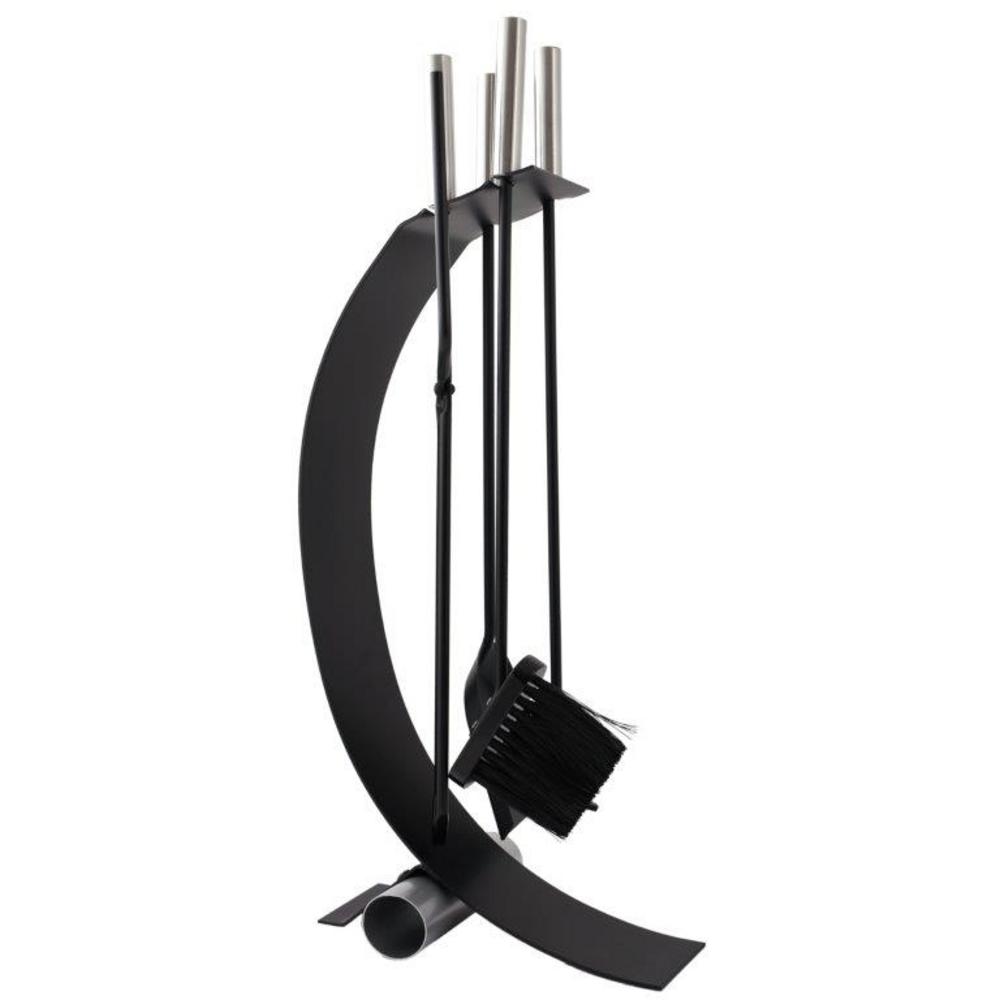 Moderná súprava krbového náradia Sada obsahuje: kutáč, lopatku, kliešte, metličku Výška stojana: 59cm Dĺžka náradia: 56cm Farba: čierna