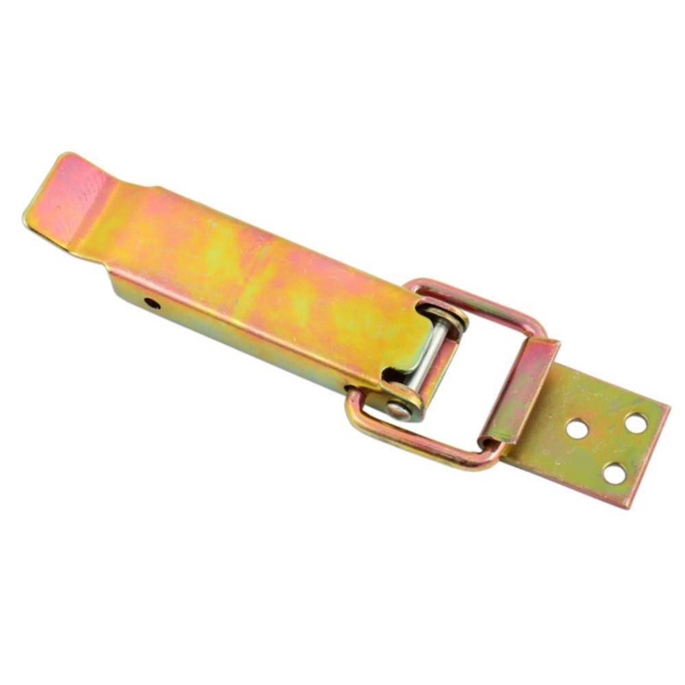 Uzáver sa používa na zaistenie zatvorenej polohy napr. veka prepravnej debne, sklopného zadného čela prívesného vozíka, viek kontrolných a čistiacich otvorov odsávacích priemyselných potrubí Súčasťou balenia je aj háčik, ktorý zabezpečí zaháknutie uzáveru Celková dĺžka: 141mm Celková šírka: 38mm