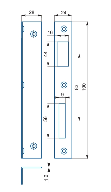 Protiplech k zadlabaciemu zámku Vŕta sa na zárubňu a slúži ako ochrana zárubne tam kde, sa používa zadlabací zámok a zároveň zabezpečuje spoľahlivé fungovanie zadlabacieho zámku Vhodný pre zámky s roztečou 72mm a 90mm