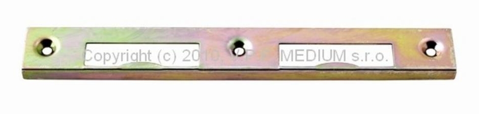 Protiplech k zadlabaciemu zámku Vŕta sa na zárubňu a slúži ako ochrana zárubne tam kde, sa používa zadlabací zámok a zároveň zabezpečuje spoľahlivé fungovanie zadlabacieho zámku Vhodný pre zámky s roztečou 72mm a 90mm Pravoľavý