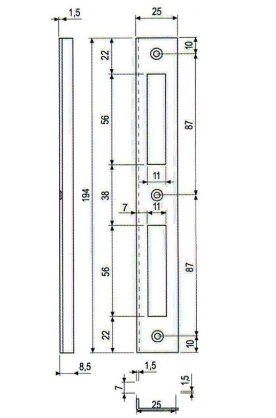 Protiplech k zadlabaciemu zámku Vŕta sa na zárubňu a slúži ako ochrana zárubne tam kde, sa používa zadlabací zámok a zároveň zabezpečuje spoľahlivé fungovanie zadlabacieho zámku