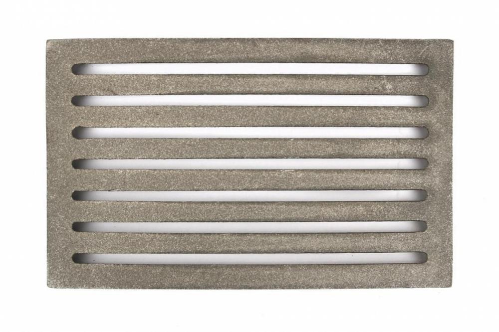 Kvalitný liatinový rošt šedej farby pre krbové kachle, pece, sporáky atď. Slovenská výroba Rozmery: 258 x158 x 15 mm Materiál: liatina
