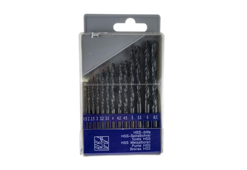 13-dielna sada vrtákov z tepaného kovu HSS s priemermi 1,5 - 6,5 mm (po 0,5mm) + 3,2 a 4,2 mm v plastovom puzdre Vrtáky sú určené na vŕtanie nelegovanej ocele, neželezných kovov a plastov Materiál: HSS oceľ