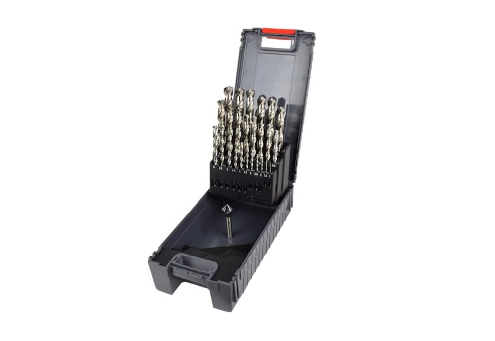 19-dielna sada vrtákov HSS Co5% 1,0 - 13,0 mm v odolnej plastovej krabici EXTRA FIT Vrtáky sú určené na vŕtanie nelegovanej a legovanej ocele, liatiny, nehrdzavejúcej ocele, žiaruvzdornej ocele, neželezných kovov a plastov Materiál: HSS Co5%