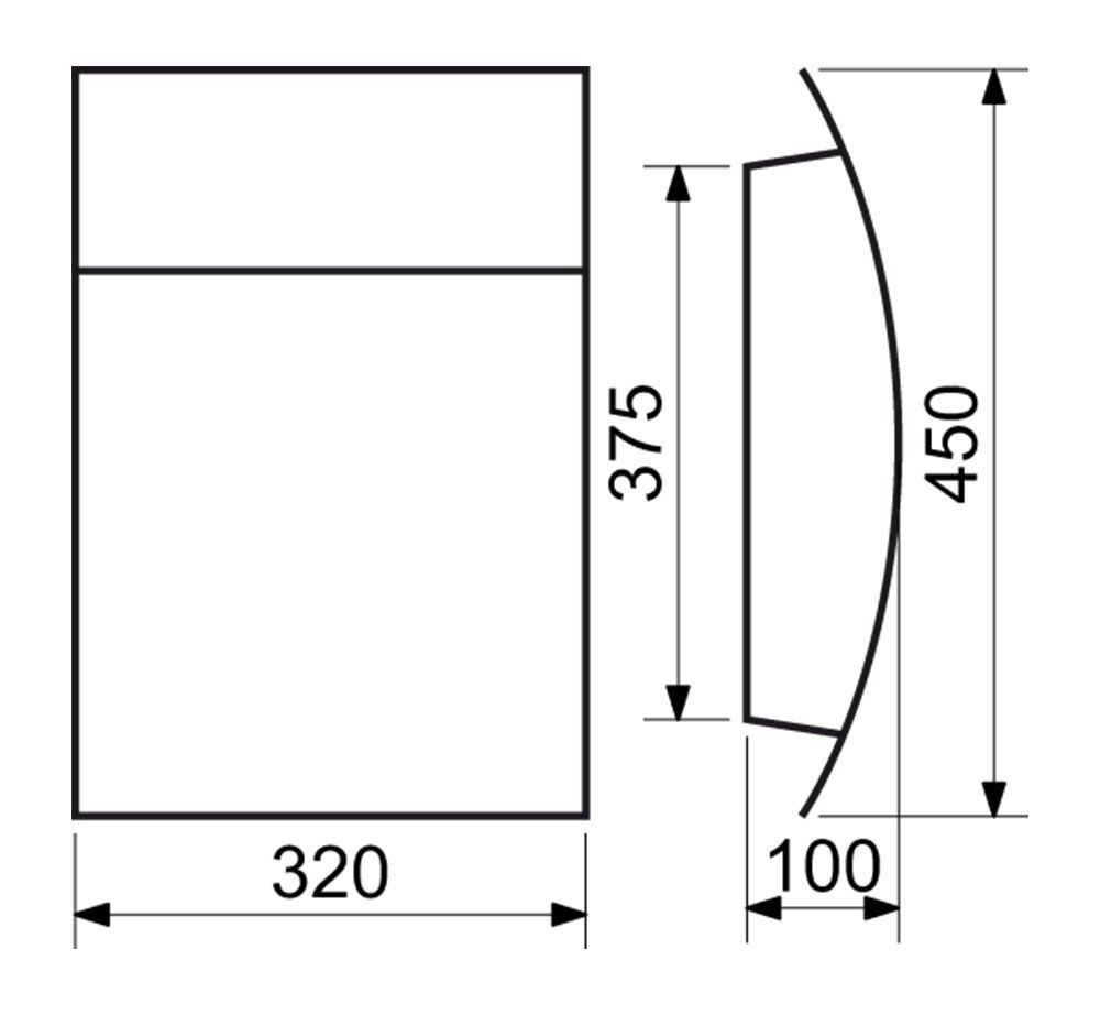 Kvalitná, moderná poštová schránka z pevného materiálu - ocele Rozmer: š-v-h.320 x 450 x100 mm Rozmery vhodu: š-v: 300 x38 mm Hrúbka materiálu: 1mm Hmotnosť: 2,56kg Farba:antracit matná Balenie obsahuje: montážny materiál a 2ks kľúčov