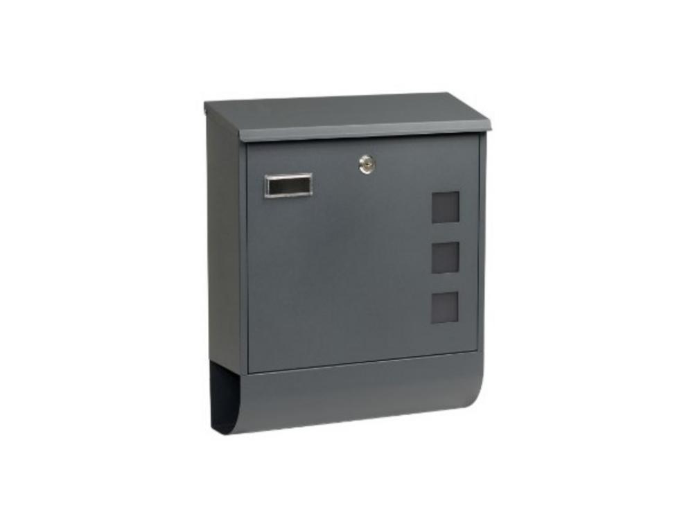 Štýlová, moderná, poštová schránka vhodná do vonkajších priestorov Schránka má aj tubus na tlačoviny Rozmery:š-v-h:355 x420 x125 mm Farba: antracit matná Balenie vrátane montážneho materiálu a 2 ks kľúčov