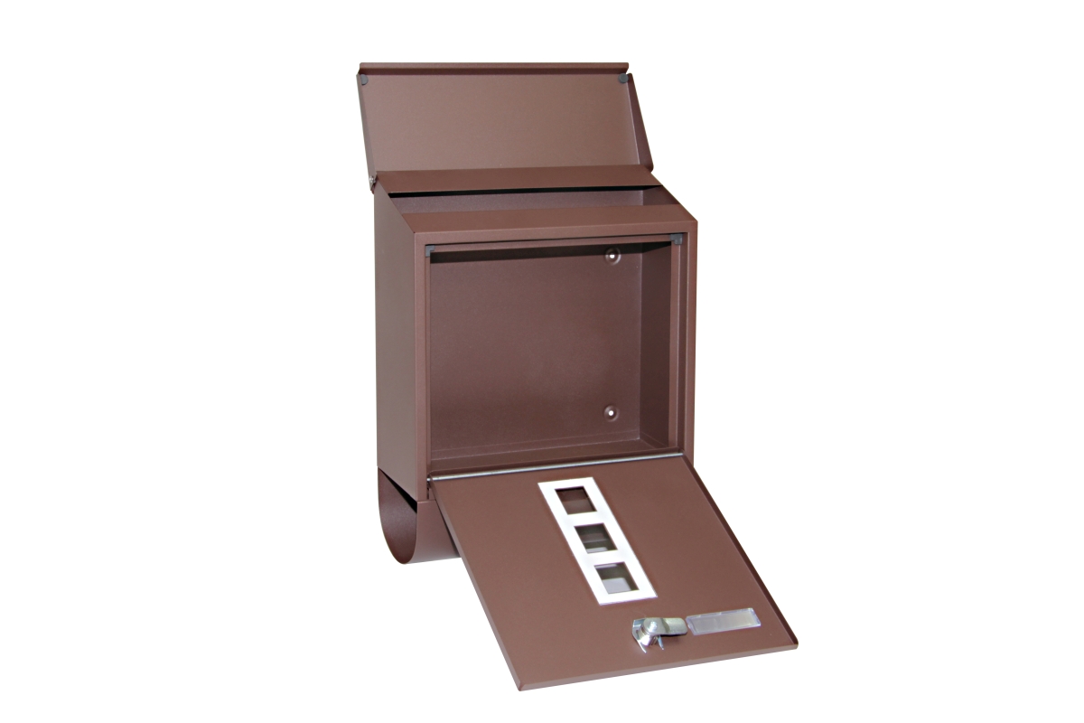 Oceľová schránka s okienkami z číreho plexiskla, s tubusom na noviny