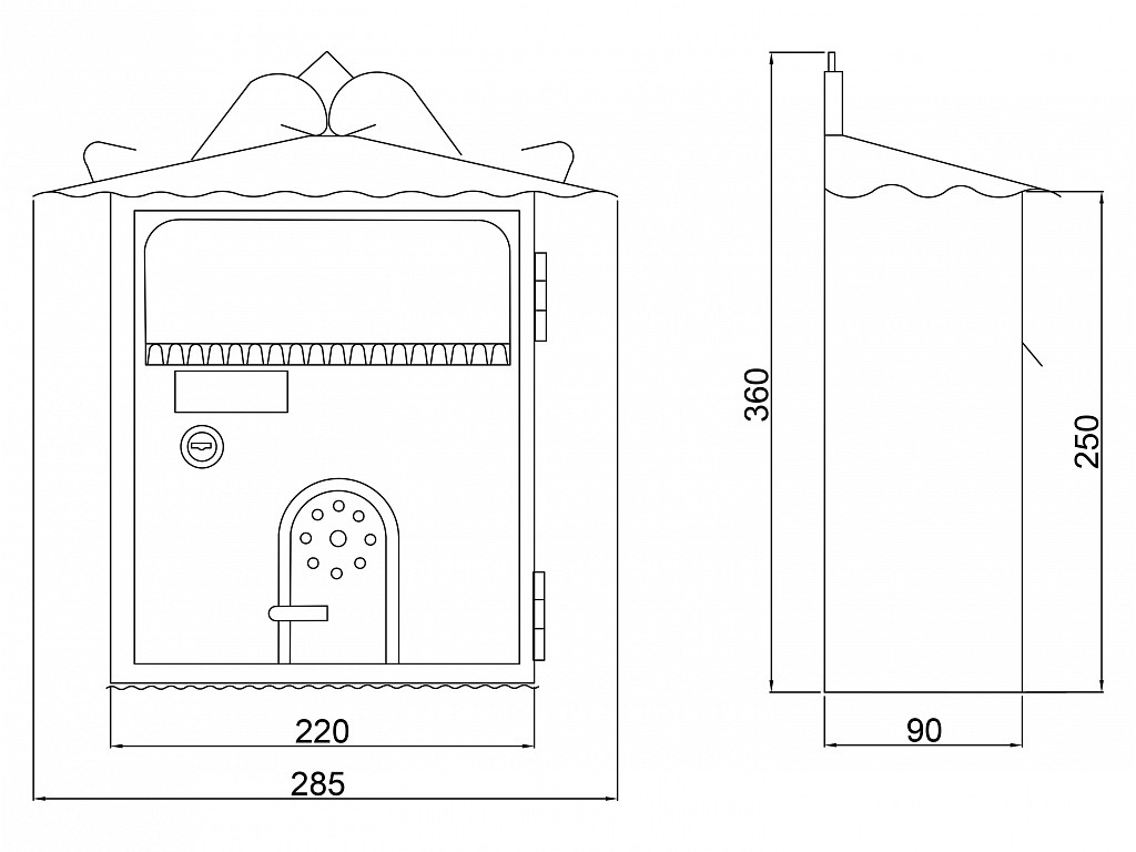 Poštová schránka Alan v atypickom spracovaní - tvar domu Je vhodná aj pre vonkajšie použitie Rozmery: š-v-h: 280 x350 x120 mm Rozmery vhodu: 160 x31 mm V balení s 2 kľúčmi