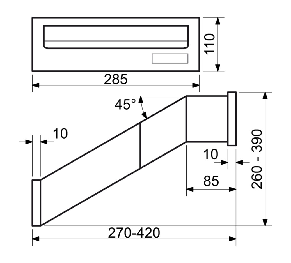 Bytová schránka vhodná aj do zostavy Šírka: 285 mm Výška: 110 mm Hrúbka: 260 - 420 mm Farba: hnedá Balenie obsahuje montážny materiál a 2 kľúče k jej otvoreniu