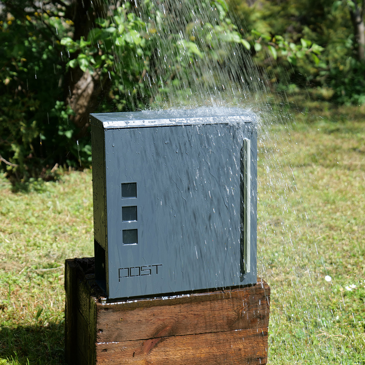 Oceľová poštová schránka s tubusom na letáky so zvýšenou ochranou proti prieniku vody Okienka z číreho plexiskla umožnujú čiastočný priehľad do vnútra Rozmer schránky š/v/h: 310x345x115mm Rozmer vhodu š/v:303x28mm Hrúbka plechu: 0,8mm Balenie obsahuje montážny materiál a 2 ks kľúčov Povrchová úprava: antracit matná AM (RAL7016)