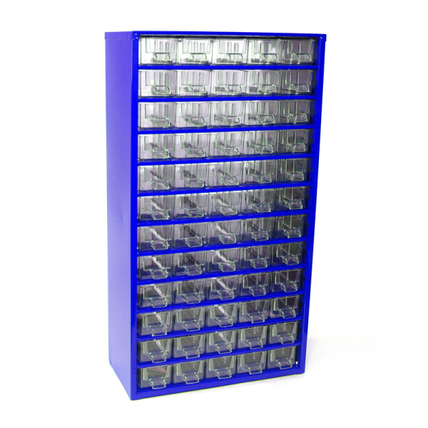 Kvalitné a odolné skrinky Tokoz, ktoré nesmú chýbať ani vo Vašej dielni, sú vyrobené z oceľového plechu a opatrené odolným práškovým lakom Číre zásuvky a prepážky sú vyrobené z trvanlivého materiálu PS (polystyrol) 60 malých (S) zásuviek Šírka: 306 mm Výška: 551 mm Hĺbka rámu: 145 mm Hĺbka vrátane presahu zásuviek: 155 mm Farba: modrá RAL 5002