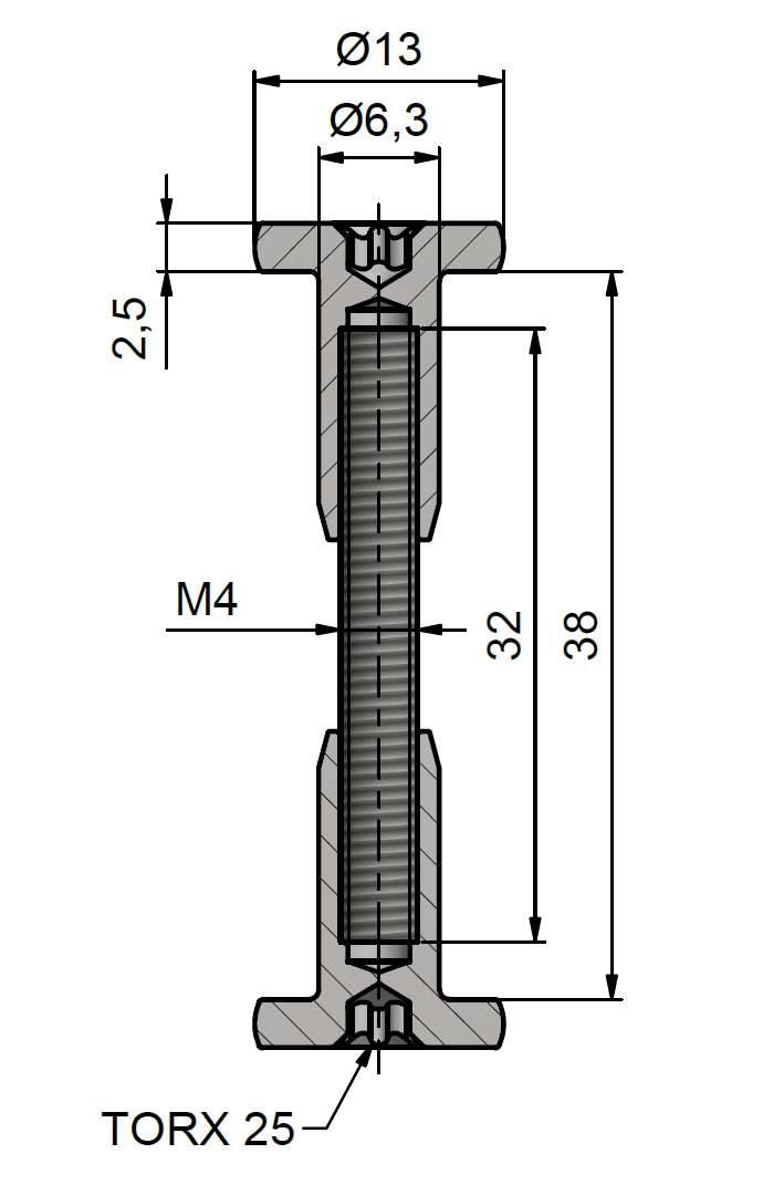 Pre spojenie nábytkových dosiek a skriniek s torxovým ukončením
