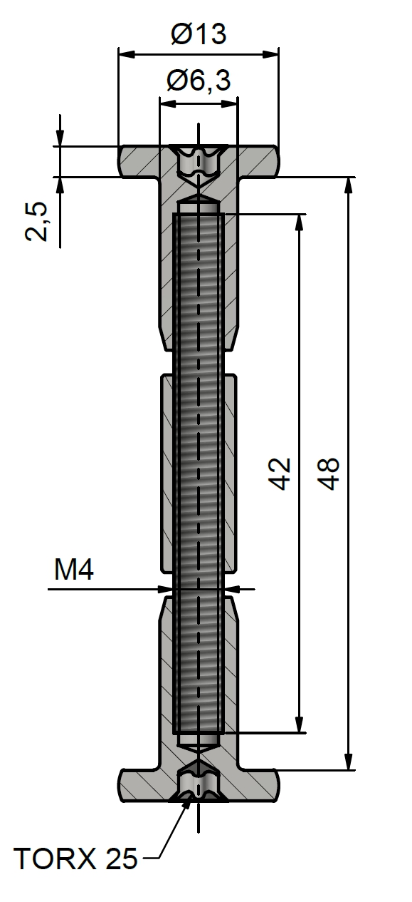 Pre spojenie nábytkových dosiek a skriniek s torxovým ukončením