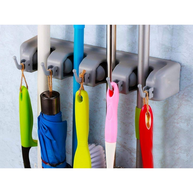 Praktický závesný vešiak pre rôzne náradie, mopy či metly