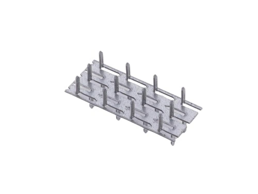 Styčníkové (niekedy aj protištiepne) dosky s prelisovanými tŕňmi slúžia predovšetkým k efektívnemu spájaniu drevených prvkov Nie je možné ich používať ako nosný spoj drevených priehradových a ďalších tesárskych konštrukcií Svoje uplatnenie nachádzajú na pomocné rámy, debnenie, obaly a iné. Rozmer: 35x84mm Hrúbka: 1,5mm Povrchová úprava: galvanicky pozinkované