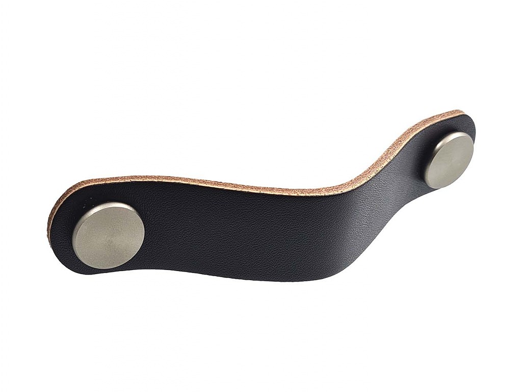 Moderná kožená úchytka v čiernom prevedení, možnosť použiť aj ako knopok Spojovací materiál je súčasťou balenia Celková dĺžka úchytky je 110mm, rozteč 96mm