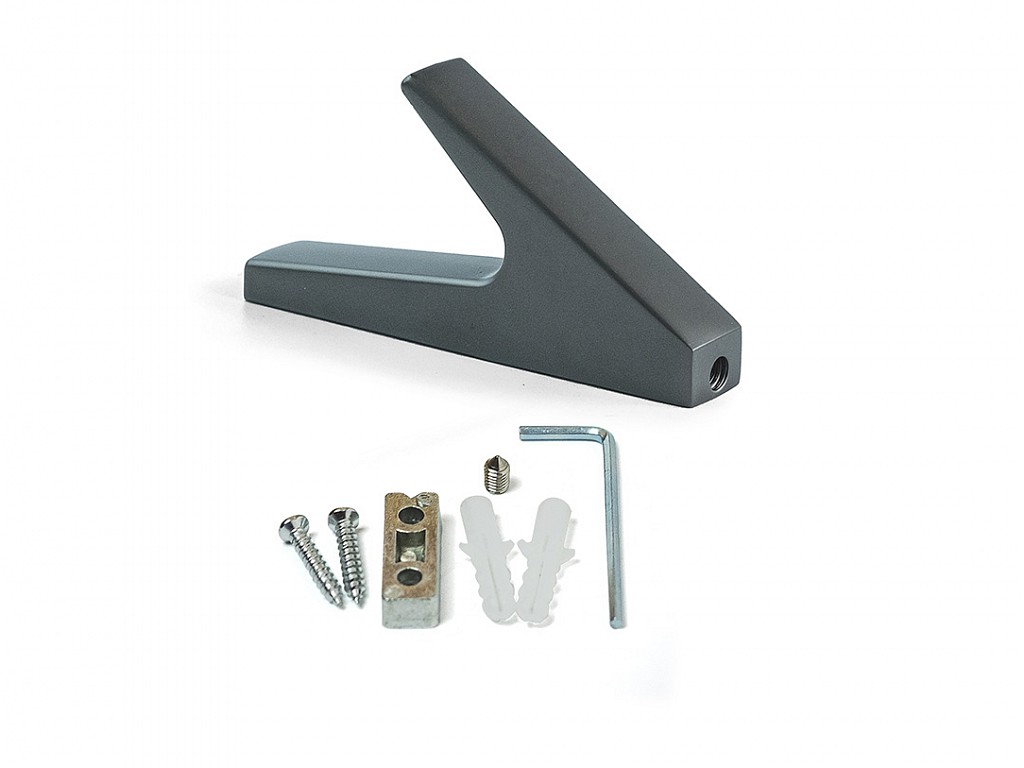 Moderný vešiak Prokop v antracitovom prevedení Vešiak má skryté uchytenie Na stenu sa 2 skrutkami prichytí upevňovací kompopnent. Na tento komponent sa nasadí vešiak a pritiahne sa ku komponentu na spodnej strane červíkom a priloženým imbusovým kľúčom sa dotiahne Celková dĺžka: 79 mm