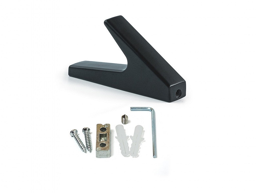 Moderný vešiak Prokop v čiernom matnom prevedení Vešiak má skryté uchytenie Na stenu sa 2 skrutkami prichytí upevňovací kompopnent. Na tento komponent sa nasadí vešiak a pritiahne sa ku komponentu na spodnej strane červíkom a priloženým imbusovým kľúčom sa dotiahne Celková dĺžka: 79 mm