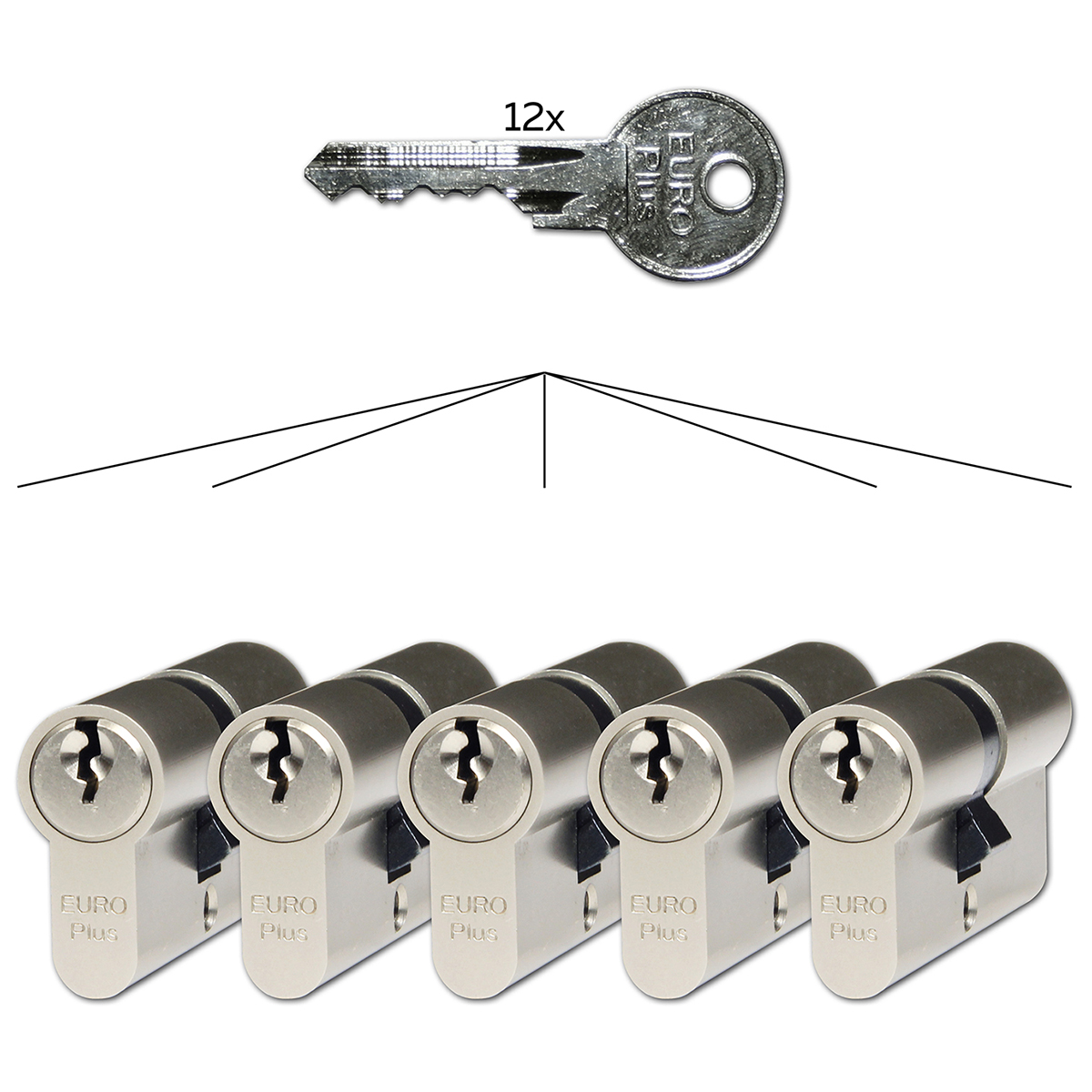 Vložky sú vhodné na uzamknutie bránky,garážovej brány, pivnice alebo záhradného domčeka. Všade tam kde sa vyžaduje dlhá životnosť a postačuje nižšia bezpečnosť. Sada na spoločný uzáver (SU) - jedným kľúčom otvoríte všetkých 5 vložiek Rozmer vložiek: 30mm + 35mm (celková dĺžka 65 mm Materiál vložiek a kľúčov: mosadz Povrchová úprava vložiek : matný nikel (NI) Certifikovaná podľa EN1303 na 50 000 cyklov Hmotnosť netto: 1,25 kg / set Balenie vrátane 12 ks predľžených kľúčov, 5 + 5 skrutka 50 + 60 mm Voľne kopírovateľný kľúč