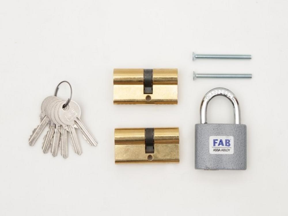 Súprava Kombi obsahuje: 2x cylindrická vložka FAB 100RSD 29mm+35mm, 1x visiaci zámok 80RSH, šírka 52mm, 6 kľúčov Vložka a visaci zámok sú zjednotené na spoločný uzáver (SU) - jedným kľúčom otvoríte všetky 3 produkty Cylindrická vložka pre základné zabezpečenie (plotové bránky, záhradné chatky a pod.), 2.trieda bezpečnosti Patentová ochrana kľúča – patent č.303 220, priemyselný vzor č. 23209 a č.26951 Vložka odolná voči nedeštruktívnej metóde – bumpingu Povrchová úprava vložky: leštená mosadz Visiaci zámok so strmeňom so zvýšenou ochranou proti rezaniu, strihaniu alebo úderom kladiva (HARDENED) oceľový jednostranne istený oblúk s priemerom 8 mm, po odomknutí samočinne výsuvný a otočný o 360° Liatinové teleso zámku s povrchovou úpravou šedý komaxit