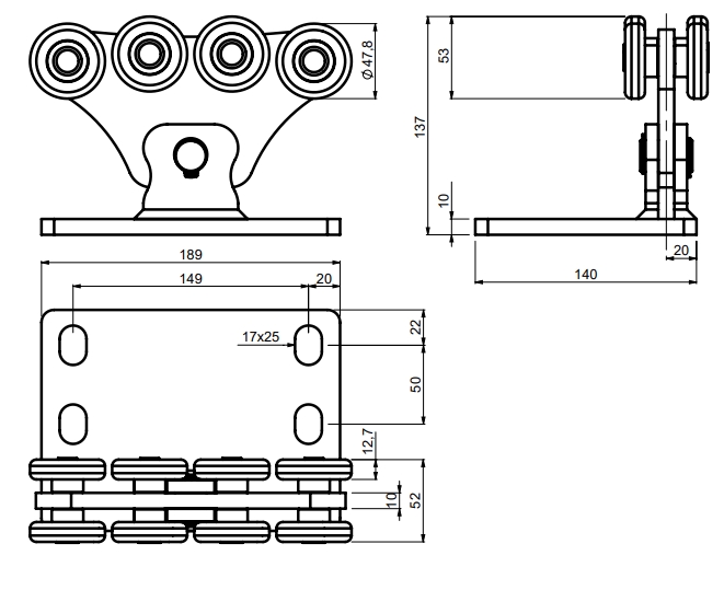 Asymetrický vozík veľkosti S je určený pre samonosné brány montované vo svahu Maximálna priechodzia šírka brány je 4,5m a maximálna hmotnosť je 450kg