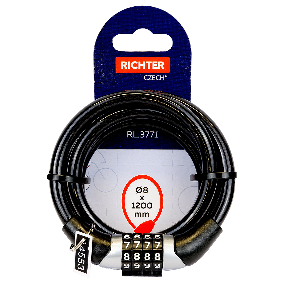 Kodóvací lankový zámok na bicykel Zámok je opatrený prednastaveným kódom (červený štítok), ktorý je fixný a nie je možné ho zmeniť. Dĺžka: 1200mm Priemer lanka: 8mm