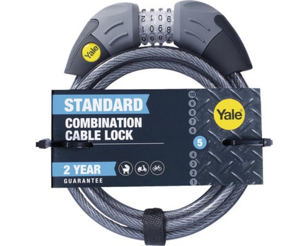 Yale lankový zámok s podsvieteným štvorčíselným kódom (až 10 000 kombinácií), ktorý je možné meniť Je určený na zamykanie kolies bicyklov, motoriek a iného Zámok má kombinovaný systém s oceľovými guličkami a kryt je z hytrelu Pletené oceľové lanko s priesvitnou vinylovou ochranou Dĺžka: 1800mm Priemer lanka: 10mm