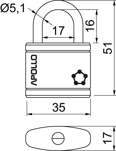 Práškovo lakované teleso zámku s plastovým krytom Strmeň zámku HARDENED, zaistený v dvoch bodoch Zamykanie bez kľúče – zatlačením strmeňa Vložka zámku s 5 odpruženými stavítkami Balenie vrátane 3 ks kľúčov