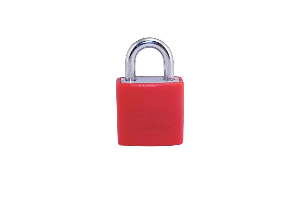 Zámok visiaci plastový 20mm červený 2 kľ.