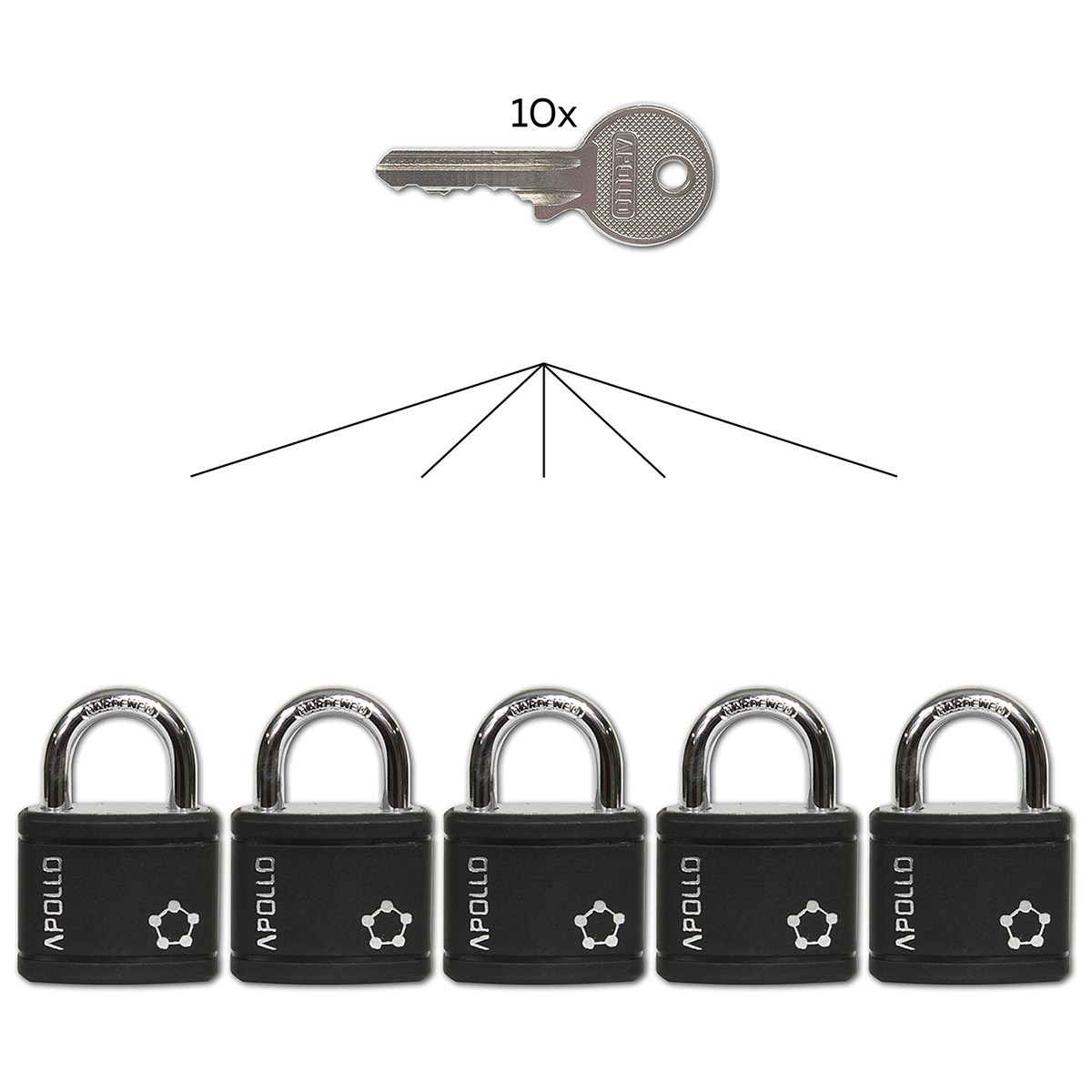 Set 5 ks zámok Apollo 35mm čierny SU 10 ks kľúčov