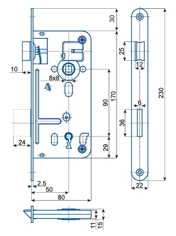 Ako správne vybrať zadlabací zámok? rozteč – vzdialenosť medzi stredom kľučky (osou štvorhranu) a stredom otvoru pre uzamykací mechanizmus (napr. pre cylindrickú vložku) backset – vzdialenosť od čela zadlabacieho zámku k ose kľučky hĺbka (šírka) zádlabu výška čela šírka čela typ otvárania dverí – pravé alebo ľavé
