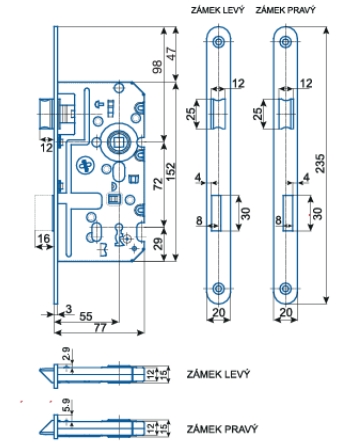 Zadlabací zámok slovenskej značky Hobes Kľúčové prevedenie Používa sa na ľavé dvere