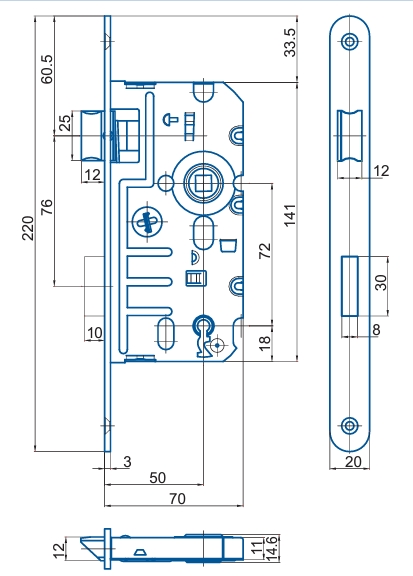 Ako správne vybrať zadlabací zámok? rozteč – vzdialenosť medzi stredom kľučky (osou štvorhranu) a stredom otvoru pre uzamykací mechanizmus (napr. pre cylindrickú vložku) backset – vzdialenosť od čela zadlabacieho zámku k ose kľučky hĺbka (šírka) zádlabu výška čela šírka čela typ otvárania dverí – pravé alebo ľavé