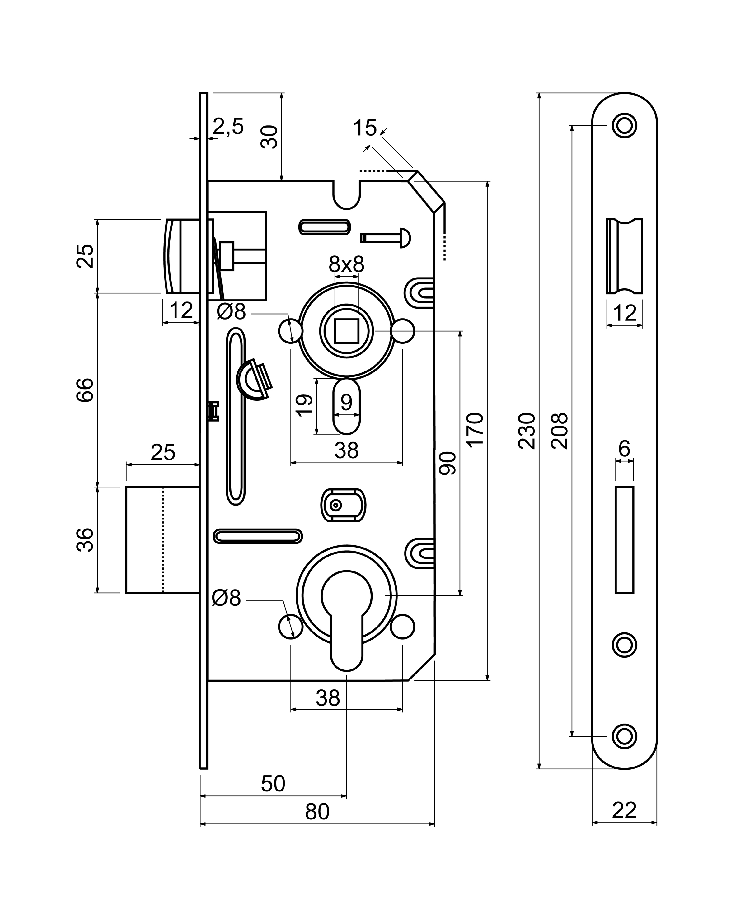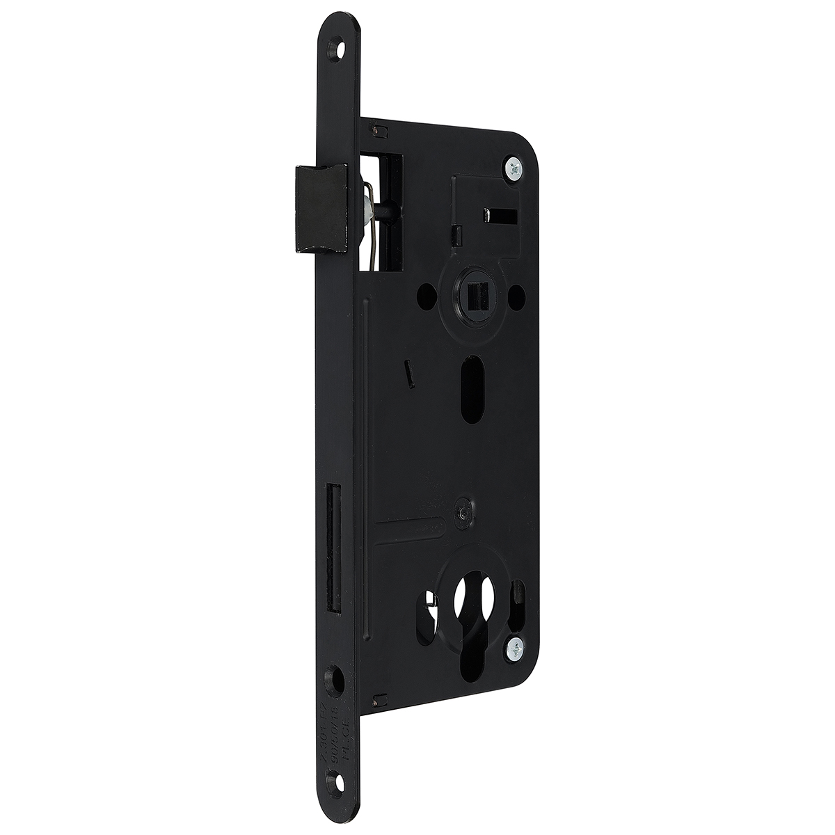 Zadlabací zámok pre cylindrickú vložku Pravoľavá strelka Dvojzápadková závora V balení sa nachádzajú vruty (2ks) a istiaci šrób (1ks) Povrchová úprava - čierna