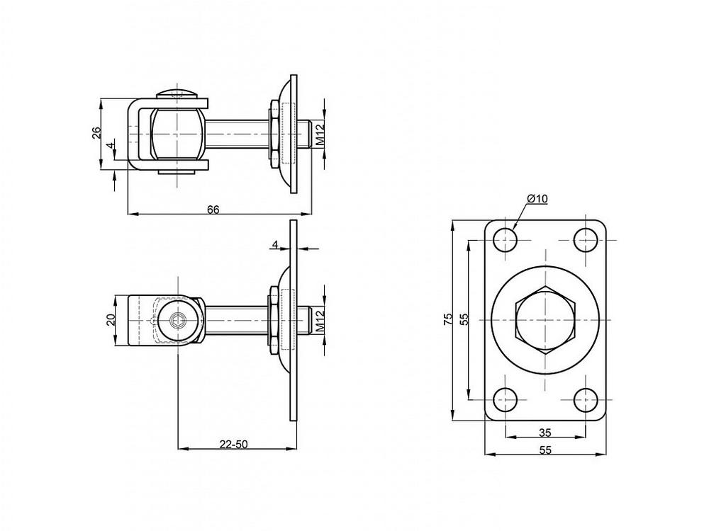 Záves nastaviteľný M12 s platničkou 55x75mm