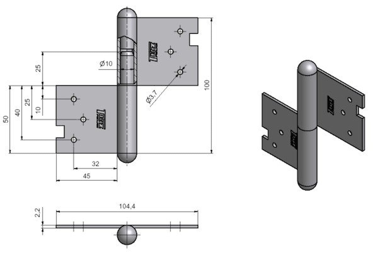 Záves na zadlabanie, používa sa na otočné spojenie dverí s polodrážkou a drevenej zárubne Vrchný a spodný diel je potrebné zaistiť klincami bez hlavičky Nosnosť: 25kg Pre ľavé dvere