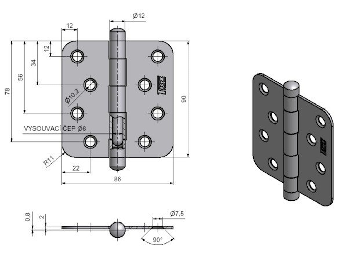 Záves (pánt) slúži k otočnému spojeniu dverí bez polodrážky so zárubňou
