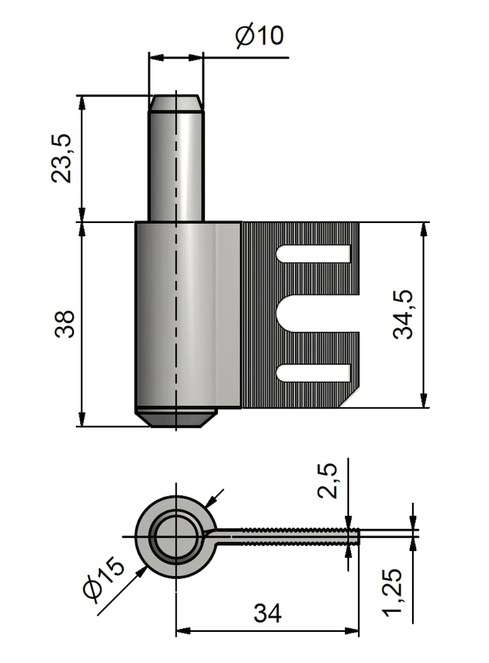 Záves – spodný diel – je určený do oceľových zárubní s vložkou 34 OZ