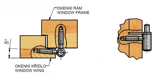 Záves k zaskrutkovaniu do okenného rámu a krídla s voľne vloženým čapom, klin zabraňuje pootočenie závesu Nosnosť 1ks: 15kg Vhodné pre pravé aj ľavé dvere